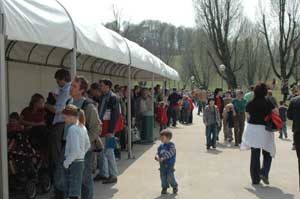 Die Frei-Karten haben Mika und Papa einer jungen Familie mit drei Kindern geschenkt, die sich bereits 4 Stunden in der Schlange (s. o. Bild) eingereiht haben. |