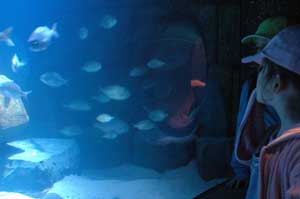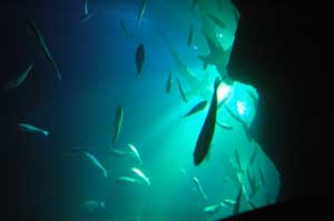 Die Tour führte uns durch ein 360° Aquarium. Von allen Seiten konnte man die Schwärme begutachten.
