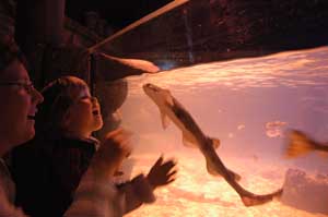Mama und Mika spielten mit dem Tigerhai.