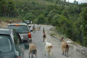 Über den Lerone-Paß - 608 m Höhe - mussten wir eine Herde Ziegen passieren lassen - eine Type für Korsika. |
