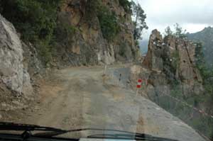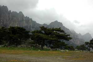Die Bavella-Gruppe - auch Aiguilles (Felsspitzen) genannt - bilden eine herrliche Gebirslandschaft. Bei einem längeren Halt auf dem Paß kann man den Blick auf die Bergspitzen genießen, den Wandel der Farbtöne an den zerklüftetet über Schwarzkiefern aufsteigende Felswände beobachten und die Schönheit des Gebirges auf sich wirken lassen.