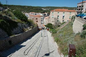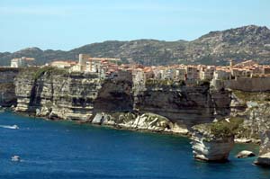 Ein Muß ist die "Treppe des Königs von Aragonien" (Escalier du Roi d'Aragon). - Die strategische Bedeutung des berühmten Felsens von Bonifacio ließ keinen größeren Herrscher gleichgültig. Bonifacio wurde fünf Monate lang belagert. Ein aragonisches Geschwader hielt den Hafen besetzt und verhinderte die Versorgung der Stad vom Landesinneren. |