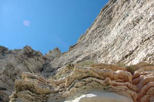 Das Plateau hat zu See hin herrliche weiße Steilküsten. Sie sind über 60 m hoch und von Wind und Wellen umtost. |