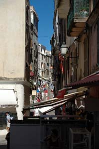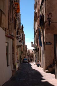 Die Altstadt ist im jedenfalle einen Stopp wert. Besonders malerisch sind die engen Gassen: Hohe Häuser mit immer geschlossenen Fensterläden säumen sie und Girlanden trockener Wäsche bringen Farbe und Bewegung in das Bild. Eigenartige Bögen, die die Häuser untereinander verbinden, sind Wasserleitungen, die das Regenwasser von den Dächern in die hauseigene Zisternen bringen. Selbst in der Mittagshitze (selbst erlebt) ist es schattig und kühl. |